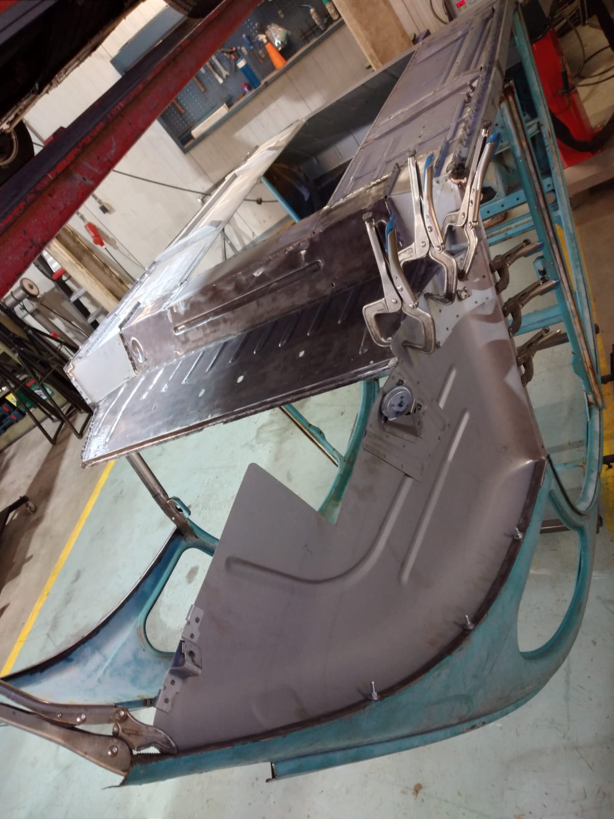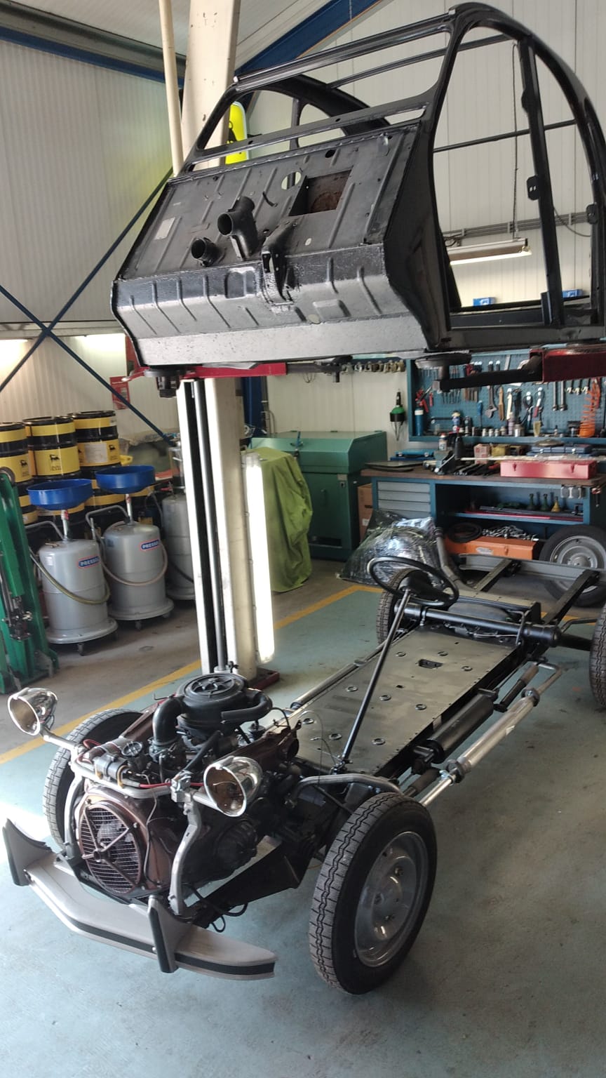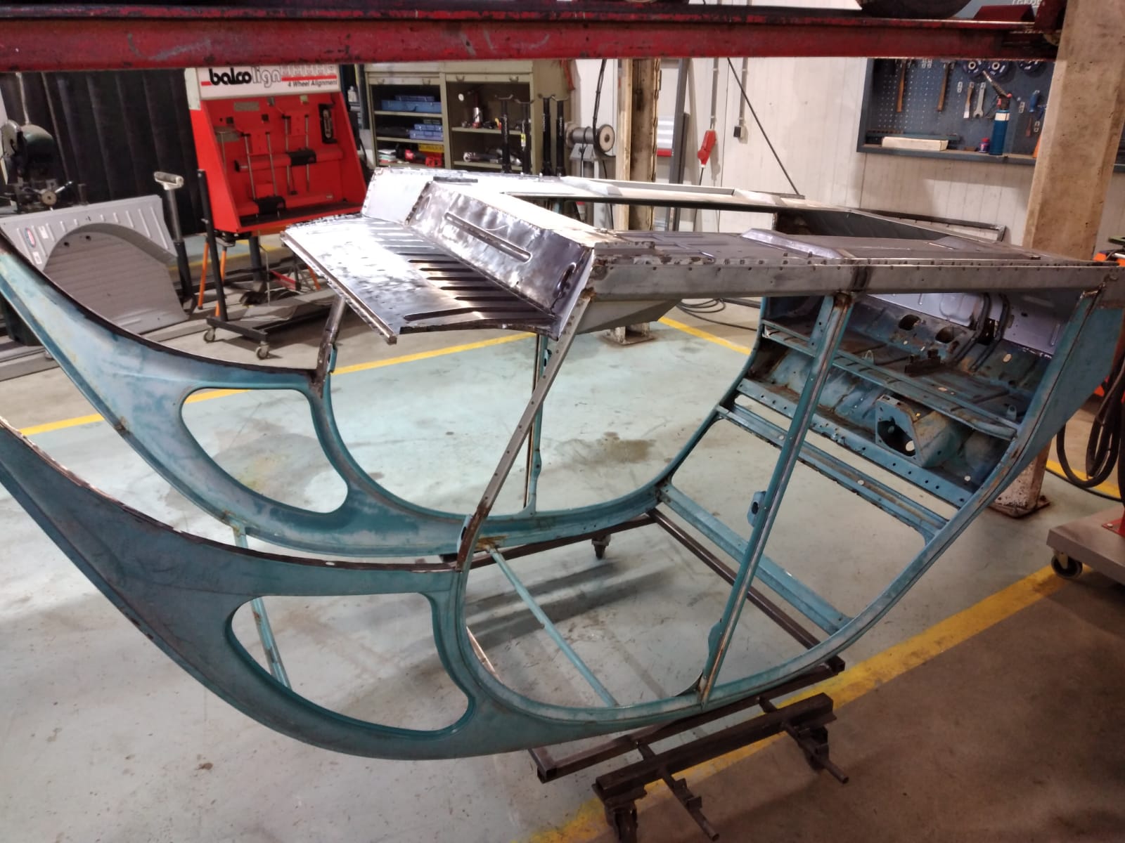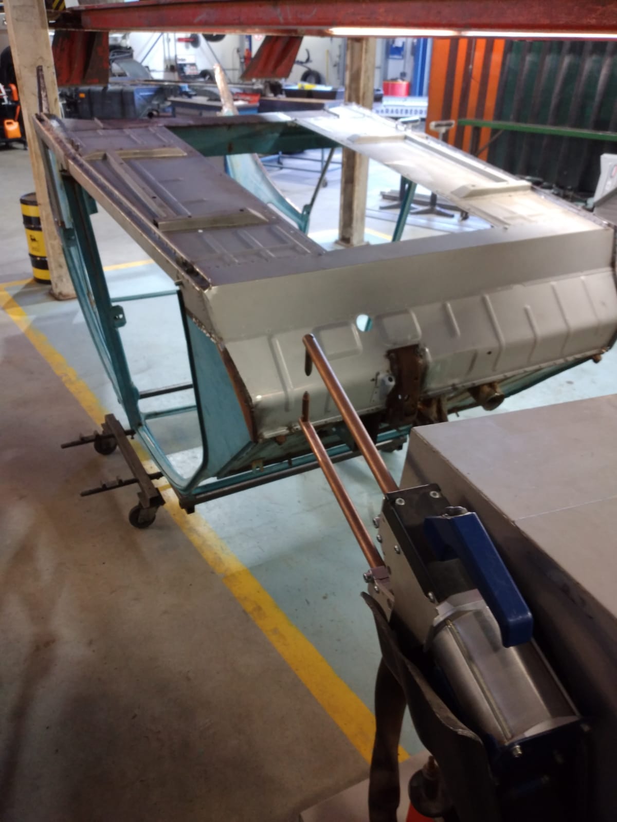 Het begint bij de basis; chassis en carrosserie. Het chassis is nieuw leverbaar maar de Carrosserie niet. In onze werkplaats herstellen we de Carrosserie. Daarbij worden bijvoorbeeld puntlastechnieken gebruikt die destijds ook in de originele fabriek werden gebruikt. Daarna wordt de carrosserie gestraald. We zorgen ervoor dat alle roest en oude verfdelen volledig verwijderd zijn.